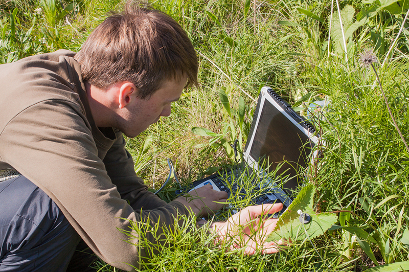 Ученые изучают и анализируют фотосинтетический газообмен растений с помощью портативной газоизмерительной системы GFS-3000 («Walz», Германия). В результате исследования получают показатели концентраций хлорофилла и фотосинтетической активности растений, находящихся вблизи истончиков запыления (технологические дороги, угольные склады, отвалы).