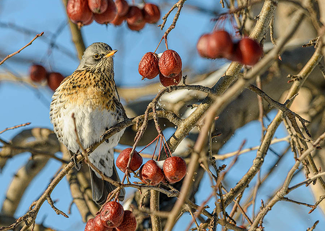 Один из самых обычных и многочисленных представителей мира пернатых. Исповедуя философию «Пока мы едины – мы непобедимы», рябинник предпочитает держаться большими стаями. Вместе они строят гнезда и выращивают птенцов, вместе зимой кочуют по городам и весям, обклевывая рябиновые и дичко-яблоневые аллеи. Дрозд умен и сообразителен, даром что птица. В последнее время от него немалый урон терпят огородники и садоводы.