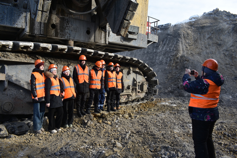 На разрезе «Виноградовский» - филиале АО «Кузбасская Топливная Компания» прошла экскурсия для школьников 7 класса школы №12 города Белово. Около десятка ребят увидели впечатляющие ландшафты горной выработки, узнали о том, как работает предприятие по добыче энергетического угля открытым способом, какая техника задействована в извлечении полезного ископаемого из недр земли и как стать специалистом угледобывающей отрасли.