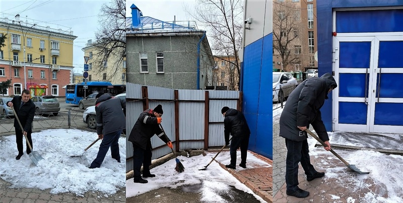 Сотрудники АО «КТК» в городе Кемерово, а также специалисты разреза «Виноградовский» в Беловском муниципальном округе выходят на улицу и очищают прилегающие к производственным и административным зданиям территории.