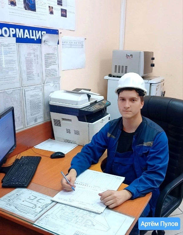 Артём Пулов, мастер производственного участка в одном из цехов обогатительной фабрики «Каскад-2». Пришел на разрез «Виноградовский» в 2021 году после армии. Сначала был уборщиком территории, на зачистке вагонов, потом стал горнорабочим. После переквалифиции на обогащение полезных ископаемых, стал мастером смены.