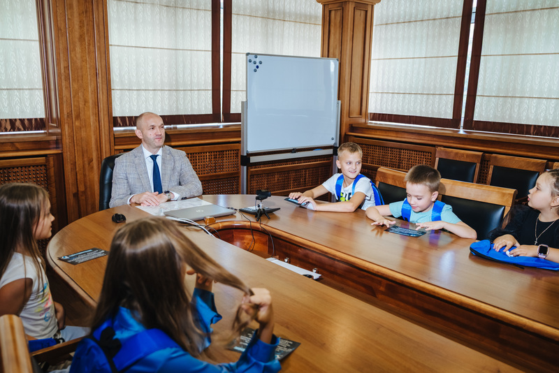 В завершение испытаний и прокачки полезных для работы навыков ребят ждала встреча с управляющим директором Евгением Дмитриевым. Самый главный человек в офисе провел для юных гостей импровизированное деловое совещание: спросил, чему полезному они научились во время прохождения квестов, что узнали о работе родителей, вручил сувениры с корпоративной символикой и пригласил на работу после окончания профильных учебных заведений.