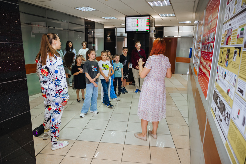 Почти полтора десятка ребят в сопровождении аниматора прошли экскурсию по зданию и решили занимательные квесты на тему работы в офисе угледобывающей компании. Дети узнали с какими задачами справляются их родители во время работы.