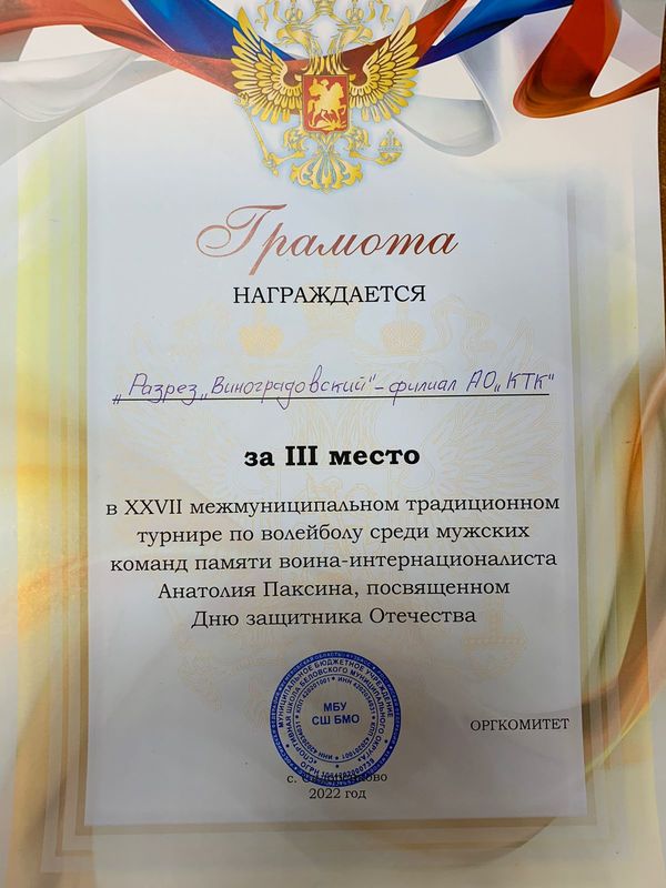 Команда разреза Виноградовский одержала победу за третье место и стала бронзовым призером турнира.
