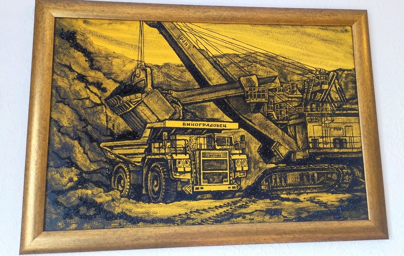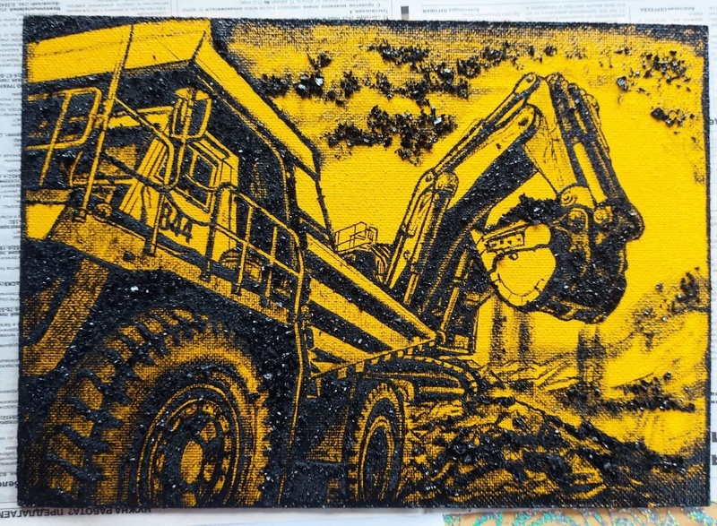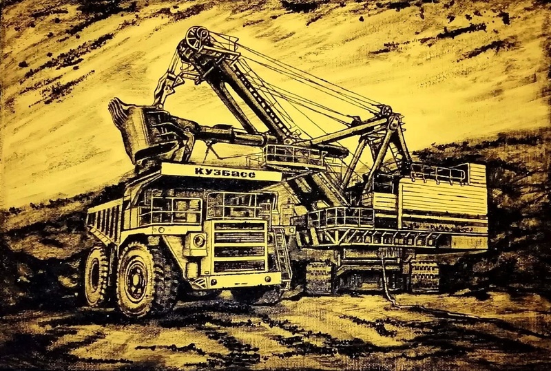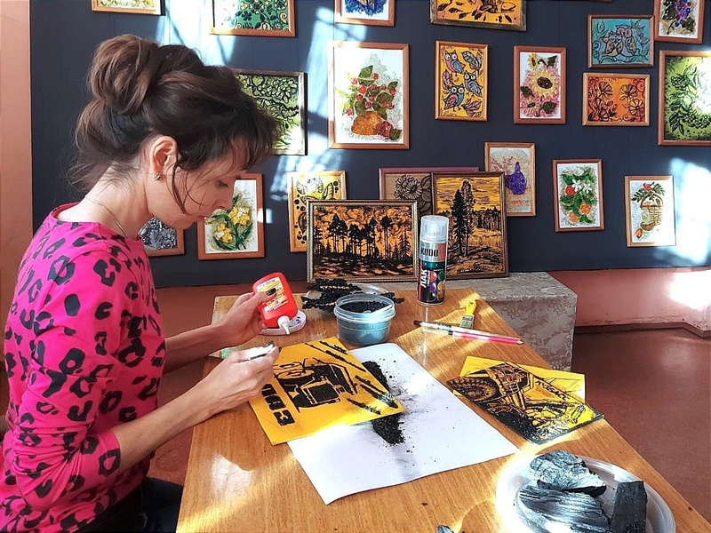 Авторской особенностью картин стал ярко-желтый фон, который художница выбрала из-за выгодного контраста с насыщенным черным цветом угля.«Мне всегда есть у кого спросить про особенности техники, которую я рисую, выведать нюансы производственного пейзажа», - рассказывает Валентина о роли супруга в творчестве.